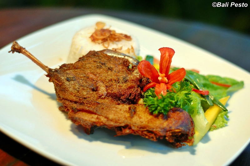 Bali Pesto features a comfortable interior with open air seatings facing Ubud’s Jalan Monkey Forest road, offering Balinese, Indonesian, and Western dishes, including a large pizza and pasta selection. Many of its guests find and like what appears to be a subtle fusion of cuisines from both ends.Antique dining tables, sofas, an old Japanese dining table, woodcarvings and historic photos of Bali from 1952 are part of the furnishings and decor. The outside garden setting is atmospheric and very popular among guests to relax and enjoy their food.Bali Pesto is famous for its soups, spring rolls, Beef scallops, tuna steak and the thin spicy Balinese pizzas. The range and quality of their fresh seafood goes through grilling, barbecuing or frying making a for a dining experience worth lingering over. It also stocks a good wine selection from Australia, Europe and America, as well as local Balinese wine.